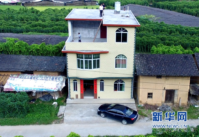 图为刘成发的新家。这是一栋占地面积90多平方米的两层半小洋房,与旁边两栋破旧的老房子形成鲜明的对比。