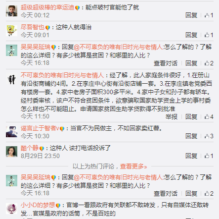 有网友留言说,该女生不符合申请贫困助学金条件。
