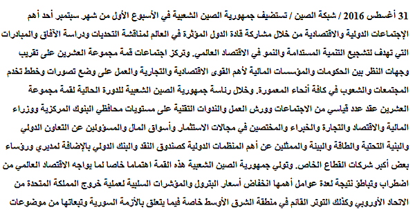 尽管全球经济面临很多困难,但是中国力图使G20峰会为全球增长做出贡献,强调克服困难和挑战,实现经济可持续发展的可能性。中国国家主席习近平提出的“一带一路”倡议就是中国为振兴周边国家和那些历史上和中国有过贸易和文化交往的国家经济的重要倡议之一。值得一提的是,中国经济对全球经济增长的贡献率超过25%,这使得中国成为全球经济增长、促进全球贸易发展和可持续发展的重要的和主要的引擎。