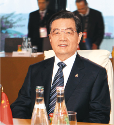 2012年6月18日,时任国家主席胡锦涛在墨西哥洛斯卡沃斯出席二十国集团领导人第七次峰会并发表重要讲话。 新华社记者 兰红光 摄