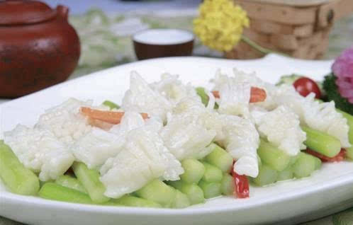 爆墨鱼花是温州的一道名菜。温州人以墨鱼作原料,能制作很多菜肴,以爆墨鱼花最有特色。墨鱼肉锲花刀,烧熟后片片墨鱼卷曲成麦穗状,造型美观。爆墨鱼花是一种刀工、火候并重的名肴。色泽洁白,脆嫩爽口,鲜香味美。