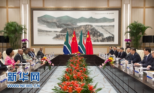 祖马表示,南中友谊源远流长,南非珍视南中全面战略伙伴关系。两国关系正不断深化,各领域合作迅速发展。南方赞赏中方为非洲发展所做的贡献,赞赏中方引领二十国集团领导人杭州峰会聚焦联动发展、联合国2030年可持续发展议程等发展议题,并特别关注非洲发展,愿密切同中方在联合国、二十国集团、金砖国家、中非合作论坛等多边框架内合作。
