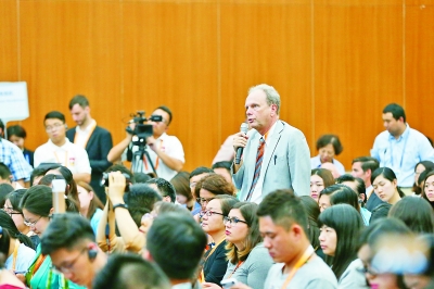 外国记者在新闻发布会上提问。本报记者 周官正摄/光明图片