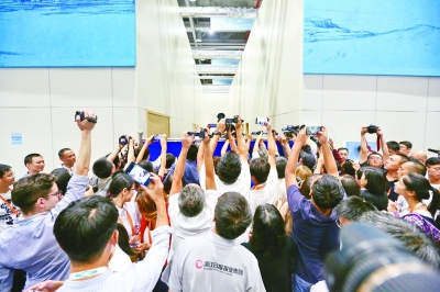 图为:媒体记者们纷纷举起相机拍摄想要的画面。本报记者 周官正摄/光明图片