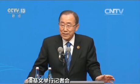 联合国秘书长 潘基文:随着中美两国迈出历史性一步,现在有26国家加入协定,用了39%的全球温室气体排放量。还需要29个国家,16%的温室气体排放量就可以使得协定生效。我敦促20国领导人能够展现领导力,加快各自国内的批准协议的流程