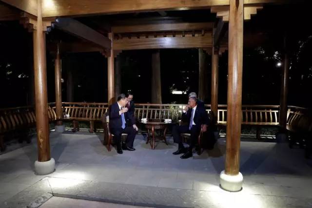 会谈之后,二人结伴夜游西湖,并在一处凉亭喝茶。虽然这次没有像之前的庄园会晤一样解下领带,但二人谈笑风生,气氛十分融洽。