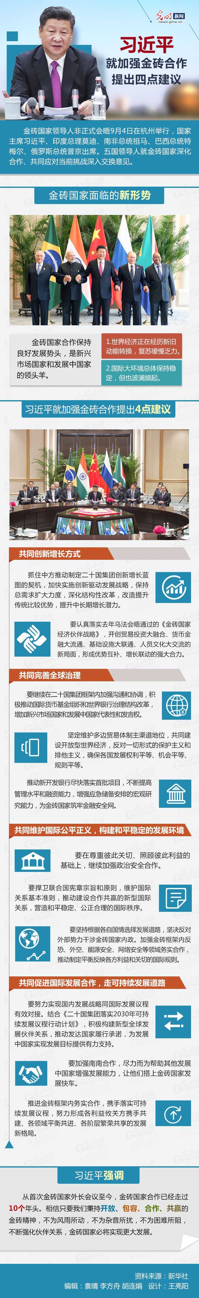 在发表题为《开拓机遇应对挑战》的重要讲话中,习近平针对金砖国家如何更好发挥作用提出了四点建议。习近平主席的发言着眼长远、高屋建瓴,“四点建议”有的放矢、引领未来。这四点建议的具体内容是什么,我们不妨一起来看一下。