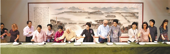 虽说是初体验,让王冬龄意外的是:“夫人们都写得不错,每人都写了三个,加拿大总理夫人索菲还和女儿合作了一个‘和’字。”