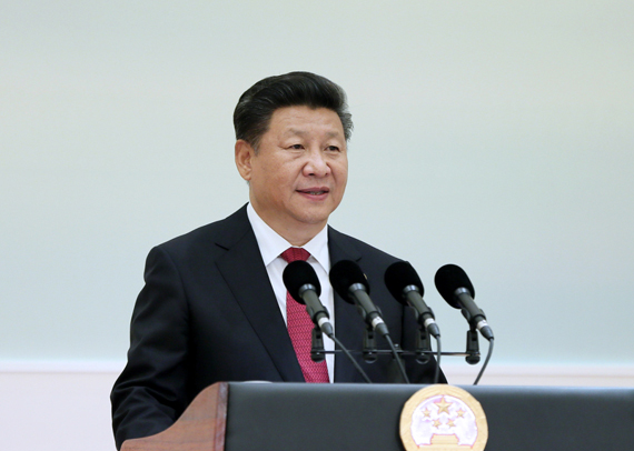 9月4日,国家主席习近平和夫人彭丽媛在杭州西子宾馆举行宴会,欢迎出席二十国集团领导人杭州峰会的外方代表团团长及所有嘉宾。这是习近平发表致辞,代表中国政府和中国人民热烈欢迎各位贵宾的到来。新华社记者兰红光摄