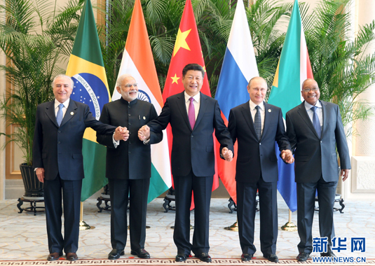 9月4日,金砖国家领导人非正式会晤在杭州举行,国家主席习近平、印度总理莫迪、南非总统祖马、巴西总统特梅尔、俄罗斯总统普京出席。新华社记者姚大伟摄