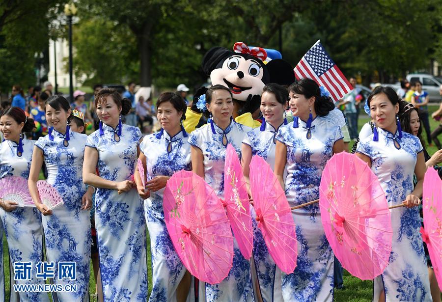 9月5日,在美国首都华盛顿白宫南侧草坪,人们在中美旅游年活动上表演。