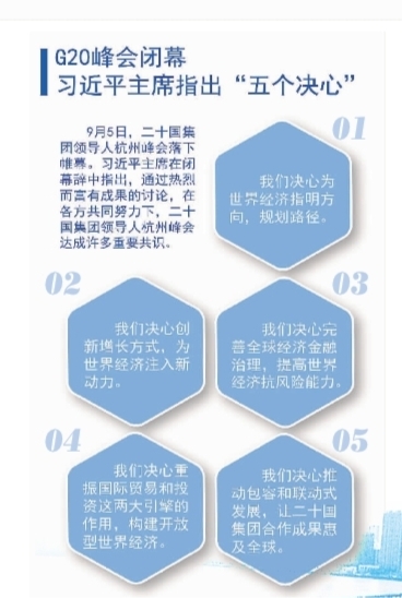 正如习近平主席在G20杭州峰会闭幕辞所言,面对当前世界经济的风险和挑战,需要标本兼治,综合施策,运用好财政、货币、结构性改革等多种有效政策工具,既要做好短期风险防范和应对,也要挖掘中长期增长潜力;既要保持总需求力度,也要改善供给质量。这将向国际社会传递二十国集团成员共促全球经济增长的积极信号,有助于提振市场信心,维护全球金融市场稳定。