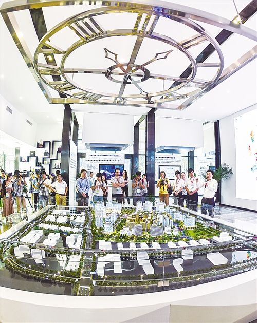 9月3日,中外媒体记者在杭州跨贸小镇进行采访,小镇融互联网产业、跨境电商及旅游购物于一体,有20多个国家和地区的主题馆。 新华社记者 徐 昱摄