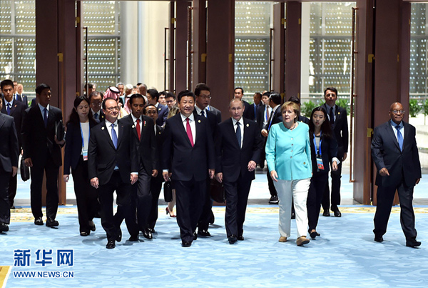9月4日,二十国集团领导人第十一次峰会在杭州国际博览中心举行。国家主席习近平主持会议并致开幕辞。这是二十国集团成员和嘉宾国领导人、有关国际组织负责人集体合影。新华社记者庞兴雷摄
