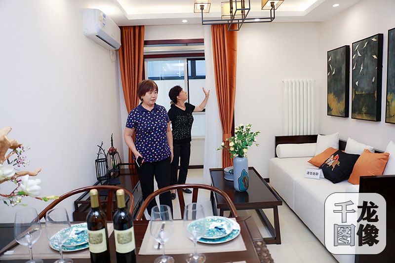 棚改回迁户无需为新房的装修而奔波烦恼,棚改区的样板间里可看到了墙壁、地板、厨房等都装修一新。图为市民在白纸坊棚改区观看样板房 千龙网记者 陈健男摄