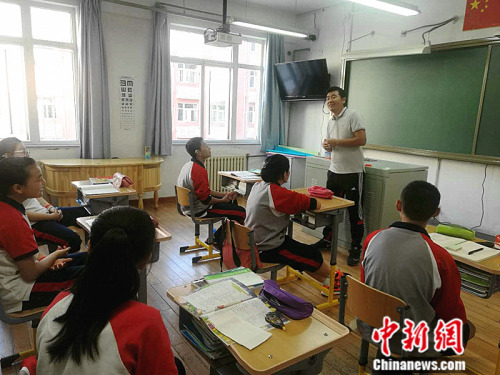 在所有班级中,一名身材健硕的男老师格外引人注目。这位名叫魏涛的男老师是一名体育教师,同时也是班主任。虽然是学体育专业出身,但是魏涛带起学生时也有细致耐心的一面。