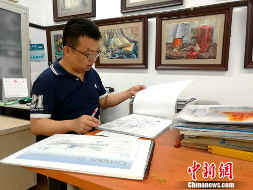 每天,王毅会早早地来到学校,一个人在安静的画室开始一天的工作。早上没课的时候,他会批阅作业,学生们交上来的绘画作品,他每一副都要认真用红笔写上长长一串评语。