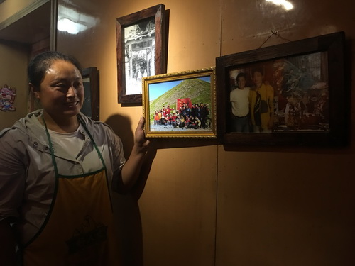 泽郎斯满的客人有一位名人,是著名主持人崔永元。2006年,崔永元和队友重走长征路来到卓克基,住到泽郎斯满的“西索人家”。在泽郎斯满的客栈走廊中,摆放着泽郎斯满丈夫和崔永元当年的合照。如今多年过去了,当初和崔永元一起来的“重走长征队”又回来“西索人家”,来看望泽郎斯满和她的家人。(记者 马常艳)
