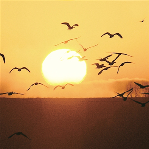 云南会泽大桥乡黑颈鹤剪影。当地生态环境良好,每年吸引大量黑颈鹤到此栖息。