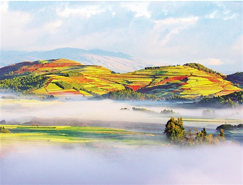 云南会泽县念湖七彩土地美景如画。1935年4月,中央红军第九军团长征经过会泽时,1500余名有志青年参加了红军。 王高祥摄