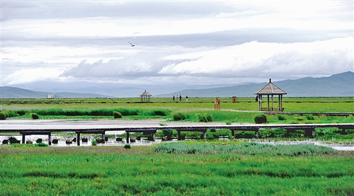 四川阿坝若尔盖大草原,人们沿着生态栈道领略美景。当年红军三过草地,在这里留下了许多可歌可泣的动人故事。