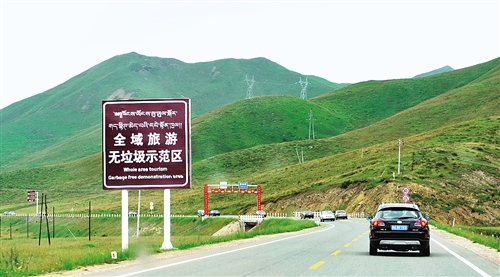 行驶在甘肃藏区,“全域旅游无垃圾示范区”的提示牌十分显眼。1935年9月、1936年8月,红军先后两次成功通过甘南。