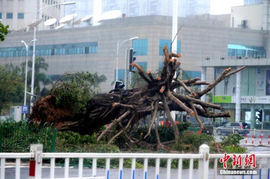 资料图:厦门街头随处可见被“莫兰蒂”台风连根拔起的大树。在“莫兰蒂”影响下,厦门有35万棵行道树倒伏,房屋倒塌损坏113处。 中新社记者 王东明 摄