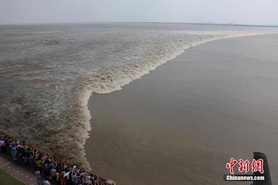9月18日消息,农历的八月十八,也是一年一度的观潮日,钱塘江大潮自古以来被称为天下奇观。只见钱塘江大潮横贯江面,白浪不断翻滚,形成一道两丈多高的白色城墙。浪潮好像千万匹白色战马齐头并进,声音如同山崩地裂,场面惊心动魄。何蒋勇 摄