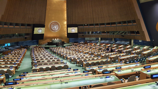 联合国大会会厅内景。(图片来源:联合国新闻部)