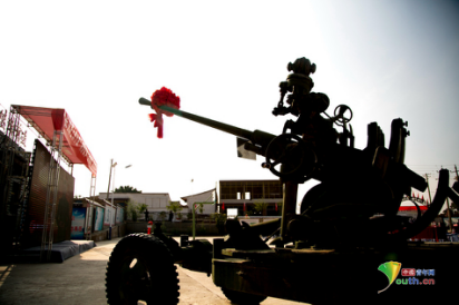 沈家岭村口的红色文化广场上,昔日怒吼的火炮早已安静。炮管上被系上了红绸,随风飘扬。中国青年网记者 孙钊 摄