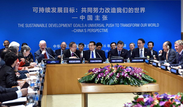 图片说明:当地时间19日下午,李克强总理在联合国总部主持“可持续发展目标:共同努力改造我们的世界——中国主张”座谈会。