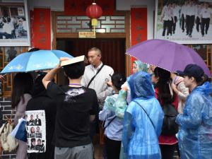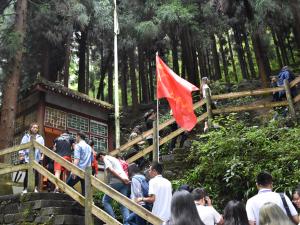“山上湿气大,地面湿滑,背重机枪的战士请注意安全!”行进至娄山关战斗遗址时,记者队伍群中传出这样一句叮嘱,大家会心一笑,继续赶路。是啊,海归百川,再越雄关,眼前这支沿狭窄湿滑的山路拾阶而上的年轻队伍,争相挤在解说员身边采访录音,甚至不惧危险蹲在石阶两旁的泥土地里,只为能用镜头捕捉最佳的报道画面。5天的时间,近2500公里的锤炼跋涉,已将这支队伍锻炼得意气风发,勇往直前。