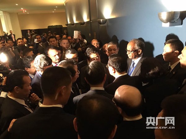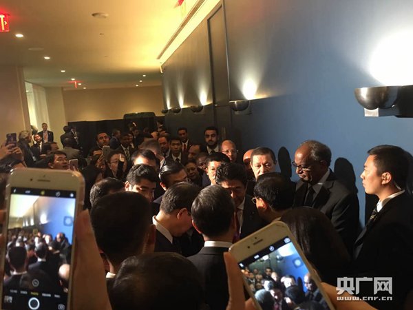 央广网纽约9月21日消息(记者马喆)当地时间21日上午,李克强在纽约联合国总部出席第71届联大一般性辩论并发言。总理发言结束后,日本首相安倍晋三在会场外过道处走上前与李克强握手交谈。