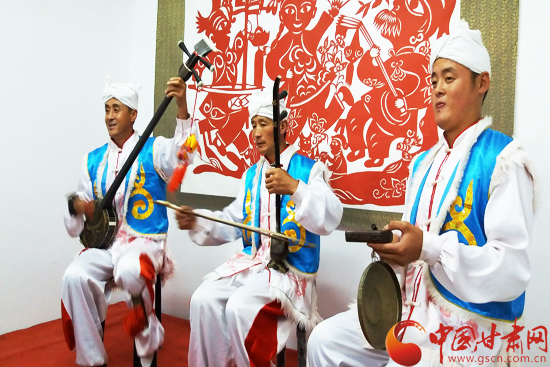 南梁说唱发端于明末,是植根于甘肃华池以及周边地区的一种原生态文化,自弹自唱,内容多为历史故事、民间传说。主唱张颖奎是被甘肃省政府认定的传承人,今年46岁,21岁时就开始学习接触南梁说唱。“就是很喜欢,跟着师傅们外出演出,是很受人喜欢和尊敬的”,张颖奎说他识字不多,但20年前的演出经历却给了他像“明星”一样的待遇,他也没想到年轻时的喜好不仅成了他生存的技能外,还被列入非遗序列,得到保护和传承。