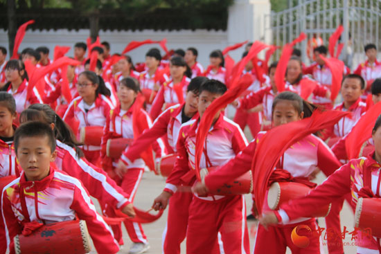 气势如虹 南梁腰鼓舞出老区学子精气神