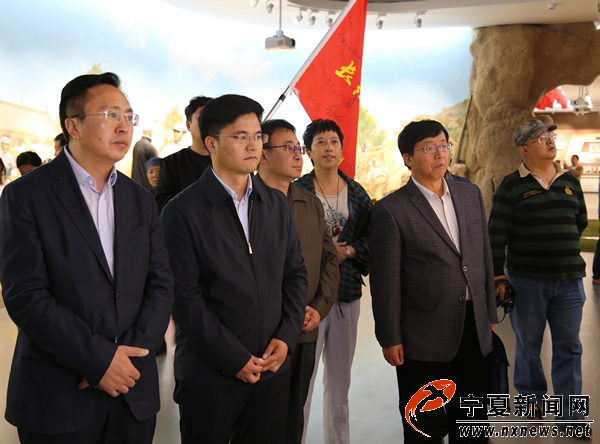 自治区党委宣传部副部长、网信办主任徐贺(左一)一行参观六盘山红军长征纪念馆。