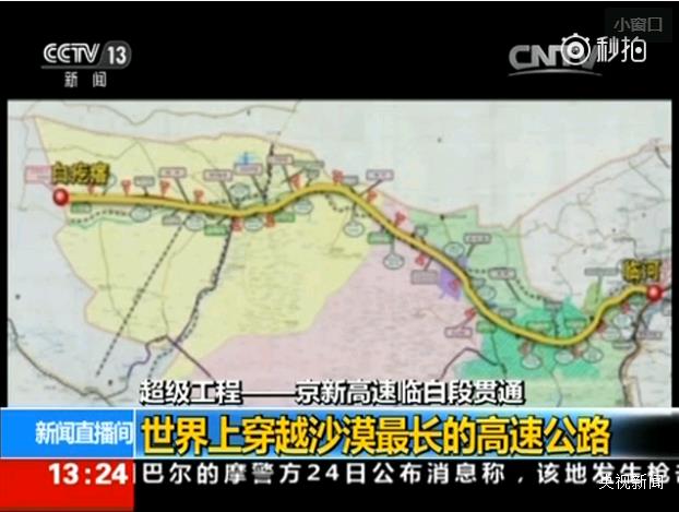 @央视新闻:【再创纪录!世界上穿越沙漠最长的高速贯通】全长930公里,位于内蒙古西部的京新高速临白段今天全线贯通。线路横贯巴丹吉林、腾格里、乌兰布和三大沙漠全境,是世界上穿越沙漠最长的一段高速路。