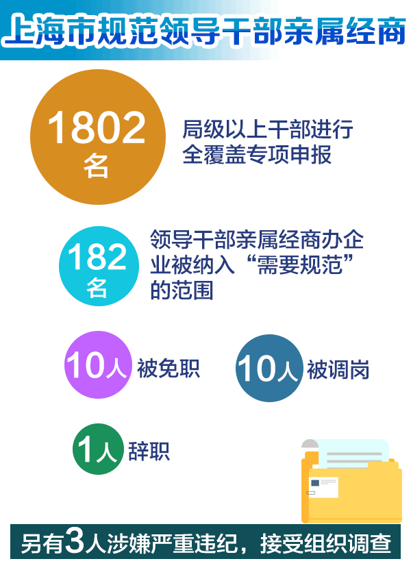 规范领导干部配偶、子女违规经商,整治领导干部“身边人腐败”,群众有期待,中央也早就盯上了。具体怎么做?去年2月,中央深改组第十次会议将试点首次选定在上海。试行一年来,上海严查领导干部亲属经商办企业,共甄别出165名市管干部需要规范,目前已全部完成规范工作。其中,112人亲属退出经商办企业活动,10人调整现任职务,10人免职退休,1人辞去现任职务,另有3人被立案调查。
