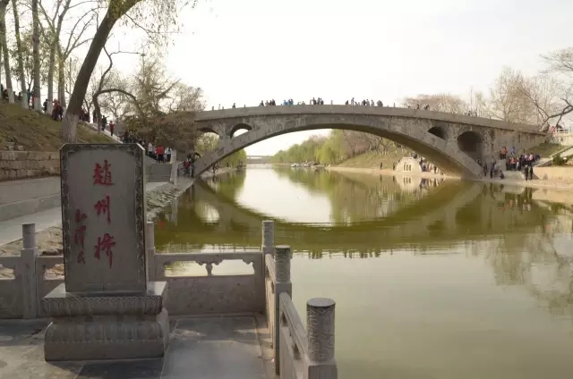 △ 赵州桥坐落在河北省赵县洨河上,横跨37米多宽的河面,因桥体全部用石料建成,俗称“大石桥”。赵州桥建于隋朝年间公元595年——605年,由著名匠师李春设计建造,距今已有1400多年的历史,是当今世界上现存最早、保存最完整的古代单孔敞肩石拱桥。