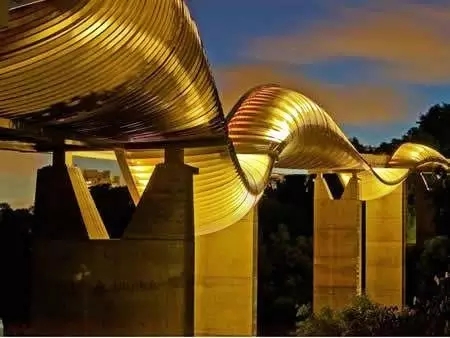 △ 高36米的哈德森波纹桥是新加坡最高的人行天桥,300米长的大桥连接了花柏山公园和直落布兰雅山公园,其波纹状的设计给人一种视觉上的冲击。