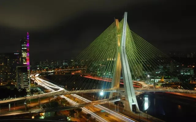 △ 横跨巴西圣保罗皮涅鲁斯河的奥利维尔大桥于2008年五月通车。桥高138米,它的独特之处在于两条交叉(呈现为X型)桥身和一座X型的支撑吊塔。