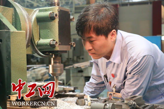 大国工匠王刚在高速运转的铣床上加工飞机零件。中工网记者 葛文琦摄