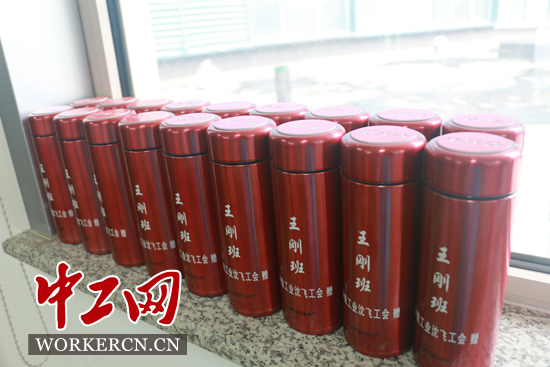 印有王刚班组每位成员名字的水杯。中工网记者 葛文琦摄