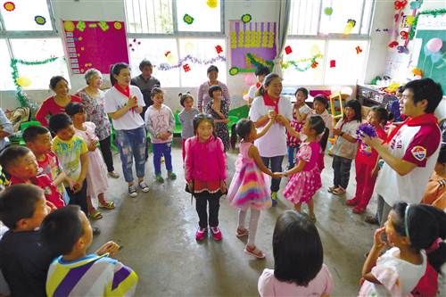 綦江区志愿者在东溪镇柴坝中心小学和山区儿童互动游戏 摄/陈星宇