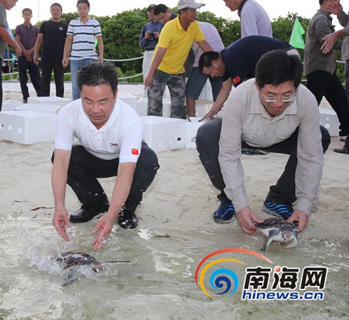 南海网、南海网客户端三沙9月29日消息(南海网记者高鹏) 9月28日,三沙市委书记、市长肖杰一行在三沙市晋卿岛放生海龟80只,在岛上植树50株,接下来还将在永乐群岛各岛礁共植树3450株。