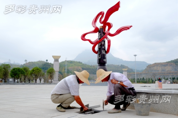 印江书法文化广场正在进行最后的收尾作业