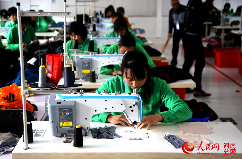 “做衣服、缝扣子,没想到我这不中用的人也有法儿挣钱了。干活儿就在家门口,也不耽误家里的事,这基地真是好。”桐柏县城郊乡北杨庄村村民董作琴说。