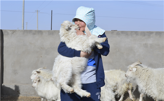 花姐抱着小羊的那一瞬,流露出她柔情的一面。魏巍 摄
