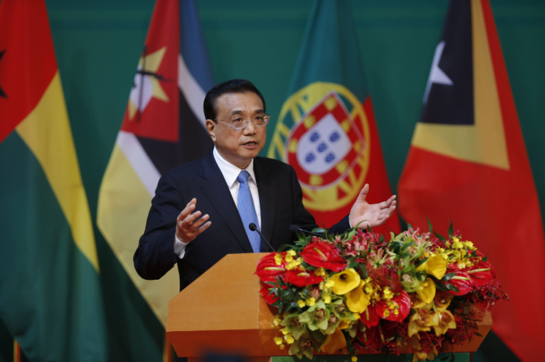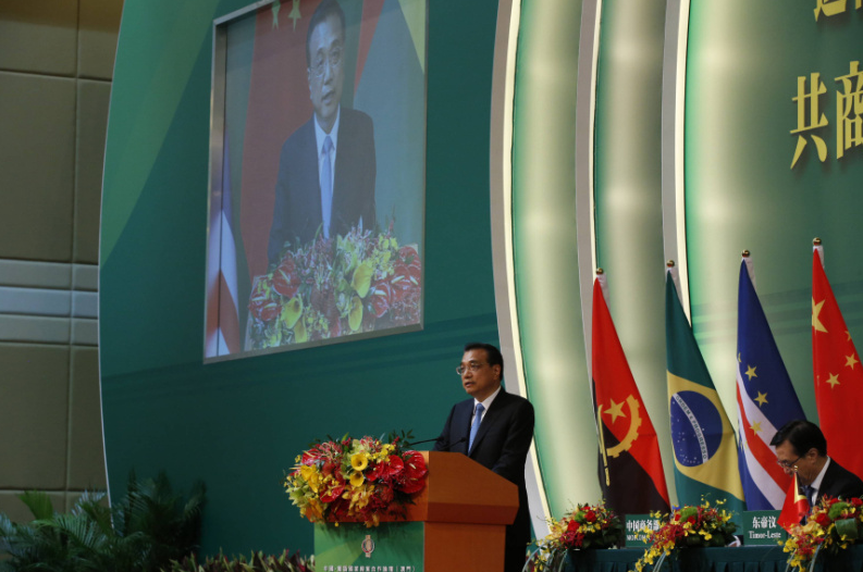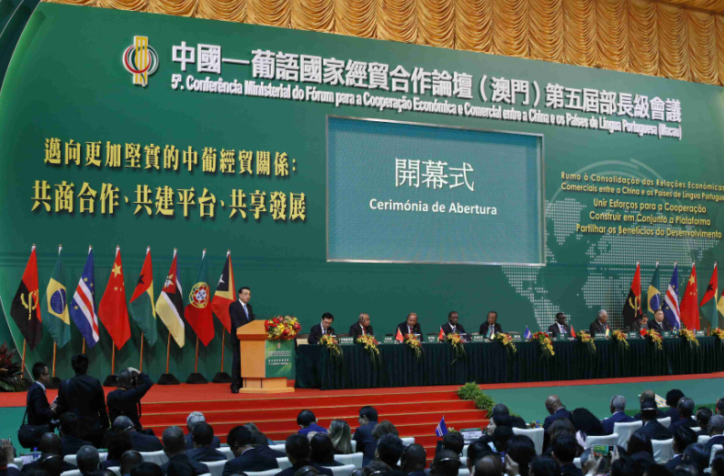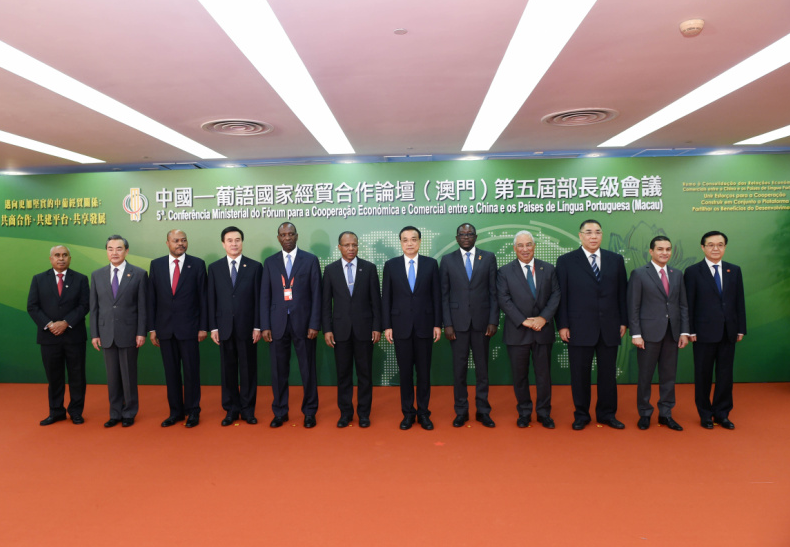国务院总理李克强11日上午在澳门出席中国-葡语国家经贸合作论坛第五届部长级会议开幕式并发表主旨演讲。佛得角总理席尔瓦、几内亚比绍总理巴西罗·贾、莫桑比克总理多罗萨里奥、葡萄牙总理科斯塔以及安哥拉、巴西、东帝汶等国政府代表与会并讲话。