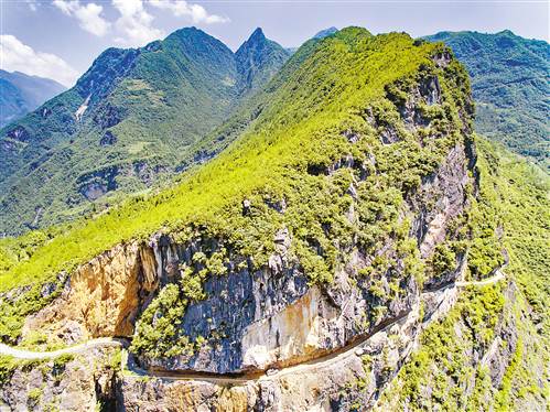 10月7日,巫溪县兰英乡兰英村,海拔近千米的周家坪老虎嘴“天路”。 记者 谢智强 摄